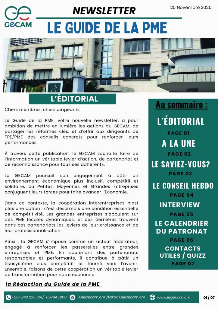 ![NEWSLETTER LE GUIDE DE LA PME Edition du 20 novembre 2025[1]_Page_1](https://legecam.cm/wp-content/uploads/2025/11/NEWSLETTER-LE-GUIDE-DE-LA-PME-Edition-du-20-novembre-20251_Page_1.jpg)