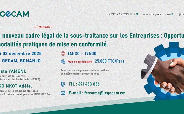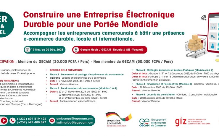 Du 28 au 29 Novembre2025 au siège du GECAM à Douala, de 9h à 17h. Nous avons le plaisir de porter à votre connaissance que, le GECAM organise en partenariat avec la GIZ, un atelier