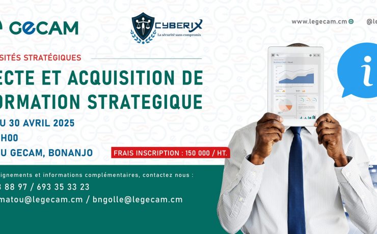Du 28 au 30 Avril 2025, au siège du GECAM (Douala), de 09h à 16h, sous le thème : « Collecte et acquisition de l’information stratégique » Le GECAM, en partenariat avec CYBERIX, vous invite