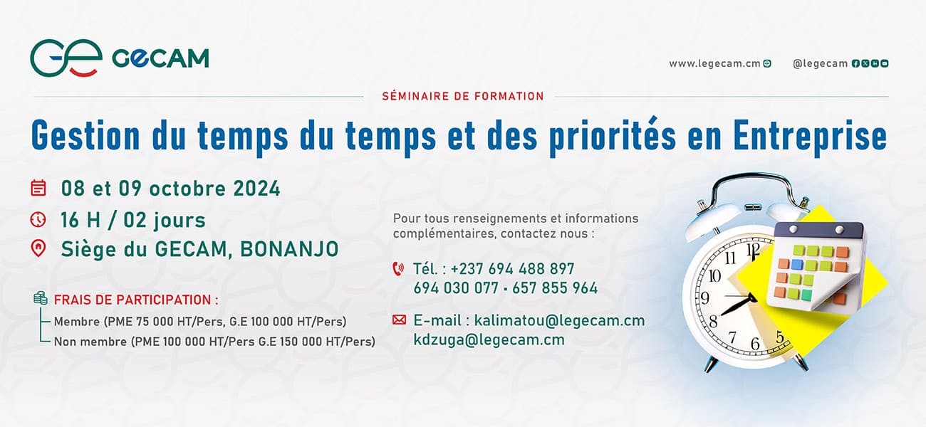 Le GECAM à travers son bureau des formations organise une fomation sur le thème : «Gestion du Temps et des priorités en Entreprise »