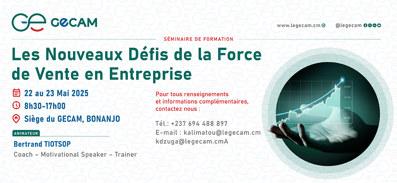 Nous avons le plaisir de porter à votre information que, le GECAM organise un atelier de formation sur le thème « Les nouveaux défis de la force de vente en Entreprise »